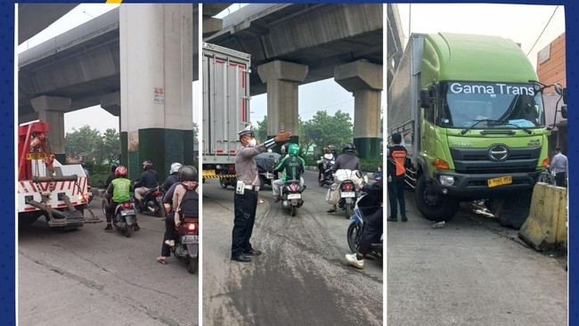 "Truk kontainer menabrak separator depan Unit Tractor Jl Raya Bekasi Jaktim arah Pulogadung, lalu lintas terpantau padat," kata TMC Polda Metro Jaya melalui akun X resminya, Selasa (12/8/2025).