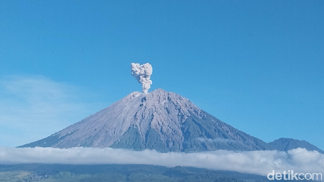 Gunung Semeru di Lumajang, Jawa Timur, kembali mengalami erupsi pagi ini. Erupsi terjadi dua kali dengan kolom abu mencapai 1.000 meter di atas puncak.