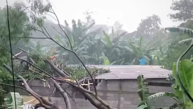 Seorang warga, Cidelrey, mengatakan peristiwa pohon tumbang itu terjadi siang tadi ketika hujan deras mengguyur daerah tersebut sekitar pukul 12.30 WIB. Pohon menimpa bangunan gudang tempat penyimpanan barang penjualan daring (online shop).