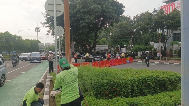 Adapun pengendara yang ingin menuju arah Monas dari lampu merah Veteran III dialihkan menuju Harmoni, Jakarta Pusat. Pengendara diminta mengikuti arahan petugas di lapangan.