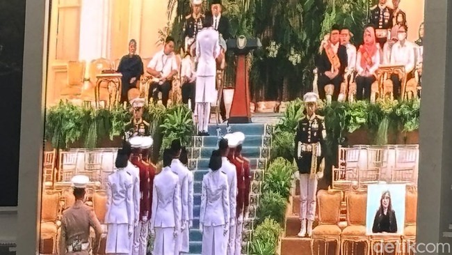 Pantauan detikcom, Kamis (14/8/2025) sore, gladi bersih upacara digelar di lapangan Istana Merdeka, Jakarta. Paskibraka terlihat mengenakan seragam upacara lengkap dengan atributnya.