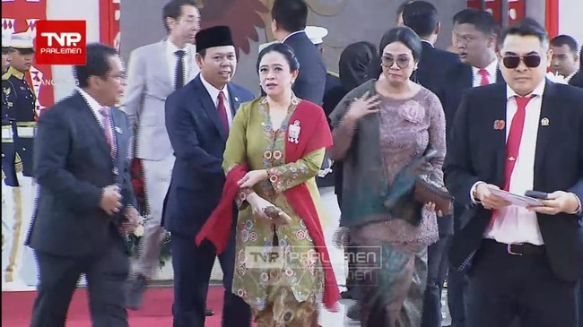 Kemudian, Puan juga sempat menyambut Wakil Presiden RI Gibran Rakabuming Raka. Keduanya pun masuk berdampingan ke dalam ruangan Sidang Tahunan MPR.