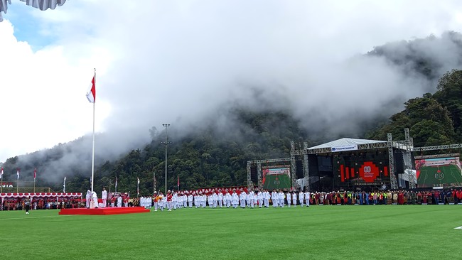 Untuk pertama kalinya, PT Freeport Indonesia (PTFI) menggelar upacara HUT ke-80 RI secara serentak di enam lokasi berbeda. Dari lapangan sepak bola Tembagapura yang berkabut dan dingin di ketinggian 2.000 mdpl, Presiden Direktur Freeport, Tony Wenas memimpin upacara sekaligus menjadi inspektur bagi ribuan karyawan yang tersebar di 6 lokasi berbeda.