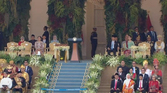 Pantauan detikcom di Istana Merdeka, Jakarta, Minggu (17/8/2025), Gibran sekitar pukul 16.40 WIB. Gibran tampak ditemani oleh istrinya Selvi Ananda.