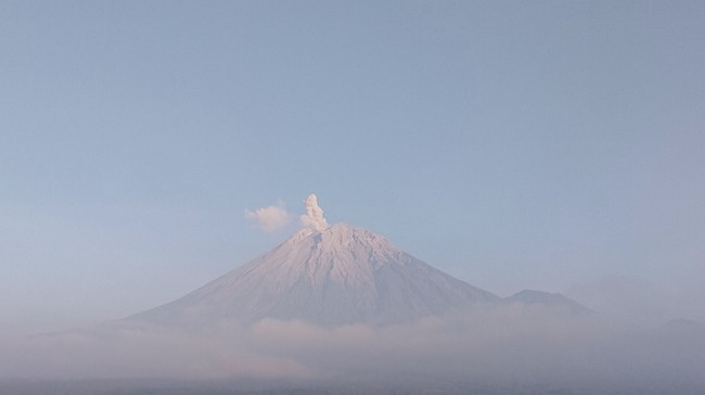 Gunung tertinggi di Pulau Jawa itu terekam kembali erupsi pada pukul 06.58 WIB dengan tinggi kolom letusan teramati sekitar 800 meter di atas puncak (4.476 mdpl).