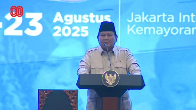 "Kita selalu optimis Indonesia akan punya pabrik mobil sendiri, Indonesia akan punya pabrik motor sendiri, Indonesia akan buat pesawat terbang, kapal sendiri, kereta api sendiri, jam tangan sendiri, pakaian sendiri, sepatu sendiri, kita akan berdiri di atas kaki kita sendiri," kata Prabowo saat memberikan pembekalan kepada Guru dan Kepala Sekolah Rakyat di JIExpo Kemayoran, Jakarta Pusat, Jumat (22/8/2025). Prabowo sempat batuk hingga suaranya terdengar sedikit serak.