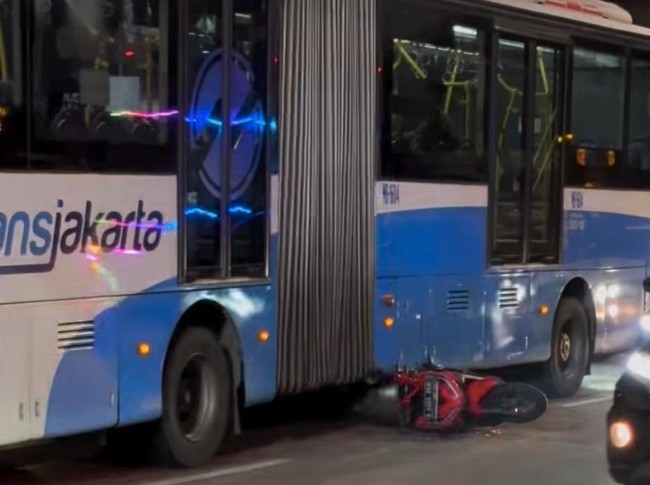 "Dari kronologi yang kami peroleh, saat bus MB 1604 akan masuk halte Plumpang, ada mobil pribadi di sisi kiri bus yang kemudian ditabrak bagian belakangnya oleh sepeda motor. Sepeda motor terjatuh dan masuk ke kolong bus, pengendaranya terpental keluar," kata Ayu dikonfirmasi terpisah.