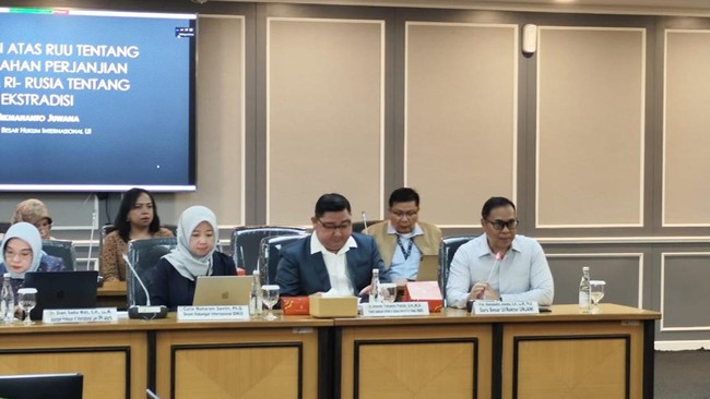 "Apakah nanti dengan ketika mengesahkan perjanjian ini WNI-WNI kita yang ikut berperang di Rusia bisa kita ekstradisi? Karena termasuk kejahatan, kalau di sini berkhianat terhadap bangsa dan negara," ujarnya.