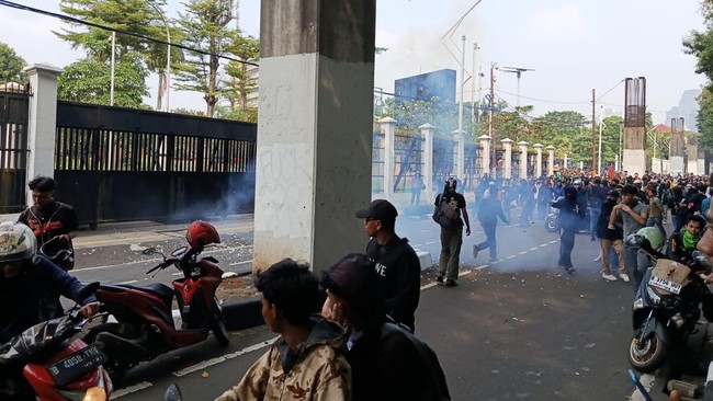 Sebelumnya, massa yang menggelar aksi unjuk rasa di depan Gedung DPR/MPR RI bergerak ke Jalan Gerbang Pemuda usai dipukul mundur polisi. Imbasnya, lalu lintas di Jalan Gerbang Pemuda, macet.