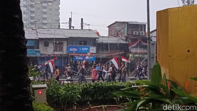 Pantauan detikcom, Senin (25/8), massa sempat beranjak membubarkan diri pada pukul 17.35 WIB setelah hujan mengguyur. Tapi tak lama kemudian, kelompok pelajar ini kembali berkumpul di Jalan Pejompongan Raya.