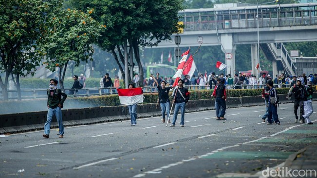 Pantauan detikcom di Jalan Pejompongan Raya, massa dari kelompok pelajar masih bertahan hingga pukul 18.40 WIB. Massa sempat bubar saat hujan deras mengguyur, namun tak lama setelahnya kembali lagi.