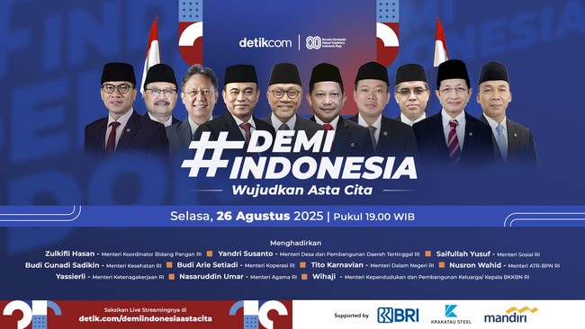 Penasaran tentang sejauh mana implementasi Asta Cita saat ini? Acara ini juga dapat disaksikan secara streaming di laman detikcom sekarang juga.