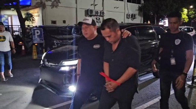 Rohmat Sukur, salah satu tersangka terkait kasus penculikan dan pembunuhan Kepala Cabang (Kacab) bank di Jakarta, Mohamad Ilham Pradipta (37), sudah ditangkap. Wajah Rohmat tampak lesu saat ditangkap polisi.