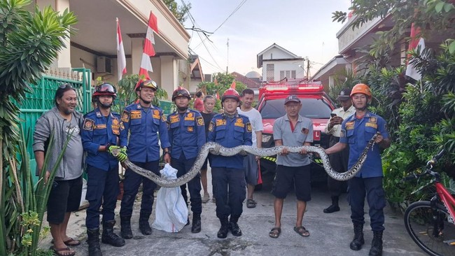 Ular sanca tersebut diketahui memiliki panjang 3 meter. Menerima laporan warga, petugas segera menuju ke lokasi yang dilaporkan.