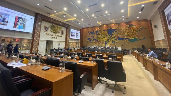 Pantauan detikcom di gedung Nusantara I DPR, Senayan, Jakarta Pusat, Kamis (28/8/2025), rapat Baleg dimulai pukul 14.17 WIB. Tampak duduk di kursi pimpinan Wakil Ketua Baleg DPR Martin Manurung.