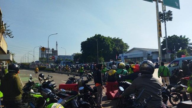 Massa yang memprotes kematian sopir ojek online (ojol) Affan Kurniawan setelah dilindas kendaraan taktis (rantis) Brimob masih bertahan di sekitar Markas Komando (Mako) Brimob di Kwitang, Jakarta Pusat. Arus lalu lintas yang mengarah ke Senen mengalami kemacetan parah pagi ini.