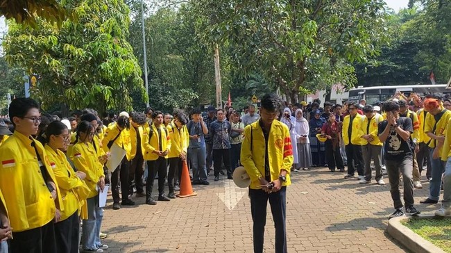 Badan Eksekutif Mahasiswa Universitas Indonesia (BEM UI) mengheningkan cipta untuk pengemudi ojek online atau ojol Affan Kurniawan yang tewas dilindas kendaraan taktis (Rantis) Brimob. BEM UI mengheningkan cipta menjelang berangkat ke Polda Metro Jaya untuk demonstrasi.