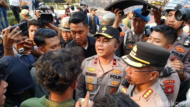 Massa aksi Badan Eksekutif Mahasiswa Seluruh Indonesia (BEM SI) berdialog langsung dengan Wakapolda Metro Jaya Brigjen Dekananto Eko Purwono. Dekananto berjanji mengusut tuntas kasus kematian Affan Kurniawan (21), driver ojek online yang tewas dilindas kendaraan taktis (rantis).