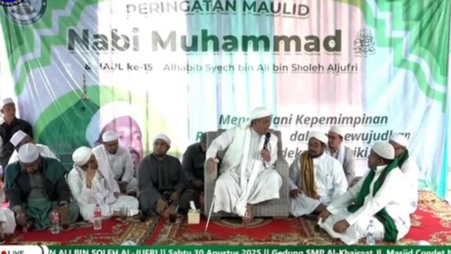Hal itu disampaikan Habib Rizieq dalam acara peringatan maulid Nabi Muhammad dan haul ke-15 Alhabib Syech bin Ali bin Sholeh Aljufri di gedung SMP Al-Khairaat, Jalan Masjid Condet, Batu Ampar, Jakarta Timur, Sabtu (30/8/2025).