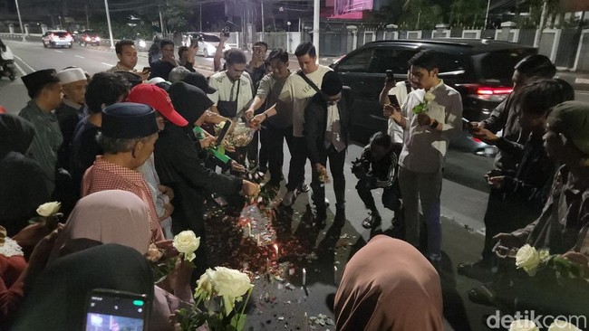 Pantauan detikcom di lokasi, kawasan Pejompongan, Jakarta Pusat, Minggu (31/8/2025) kegiatan dimulai sekitar pukul 20.10 WIB. Aksi dimulai dengan tabur bunga.