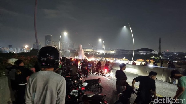 Sementara itu, pantauan di Flyover Summarecon Senin (1/9) pukul 00.10 WIB, warga juga ramai berkumpul di atas flyover. Mereka memberhentikan motornya.