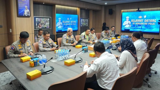 Rapat kerja ini digelar di Gedung NTMC Polri, Jakarta, Senin (1/9/2025). Hadir Kakorlantas Polri Irjen Agus Suryonugrono, Dirjen Perhubungan Darat Aan Suhanan, Dirut Jasa Marga Rivan Achmad Purwantono, juga perwakilan dari KemenPU. Sejumlah PJU Korlantas Polri turut mendampingi Kakorlantas dalam pertemuan ini.