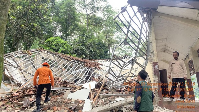 "Dikarenakan hujan dengan intensitas tinggi yang disertai angin kencang dan kondisi bangunan yang sudah tua sehingga mengakibatkan dua unit ruang kelas SDN Nangela mengalami ambruk," kata Kabid Kedaruratan dan Logistik BPBD Kabupaten Bogor, M Adam Hamdani, Selasa (2/9/2025).