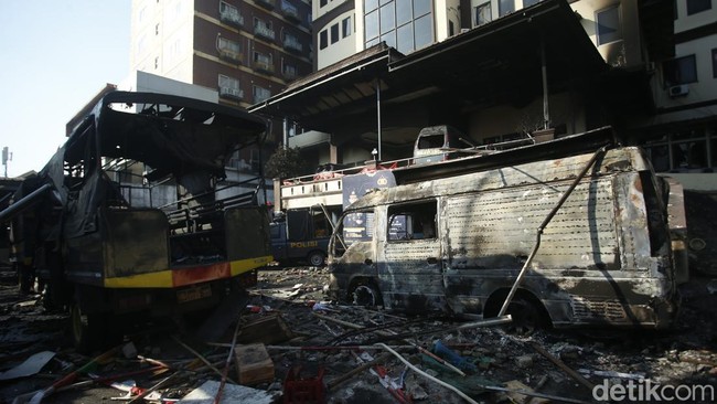 Sebelumnya, Polres Metro Jaktim menjadi sasaran penyerangan pada Sabtu (30/8) dini hari. Molotov berkali-kali dilempar ke area dalam Polres Jaktim hingga kebakaran.
