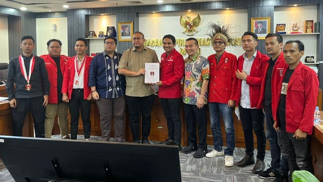 Audiensi diterima oleh Wakil Ketua Komisi VI DPR Andre Rosiade bersama anggota Komisi IV DPR Daniel Johan dan anggota Komisi VI DPR Kawendra Lukistian di Badan Aspirasi Masyarakat (BAM), kompleks parlemen, Senayan, Jakarta, Rabu (3/9/2025). Ketua Umum GMNI Sujahri Somar menilai demonstrasi beberapa hari terakhir ini dikarenakan kebijakan Menteri Keuangan.