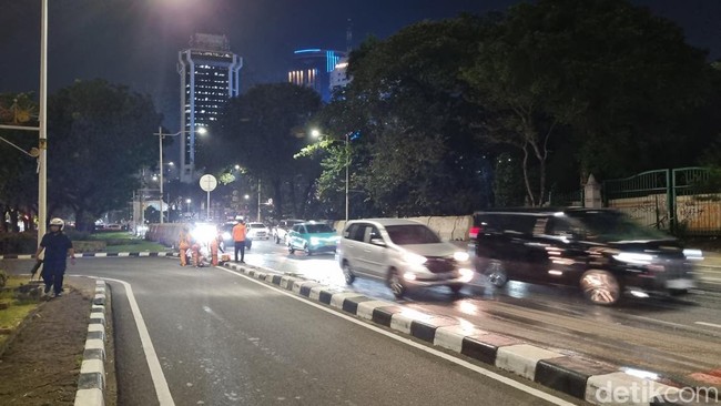 Pantauan detikcom di lokasi, Kamis (4/9/2025) pembukaan jalan dari Patung Kuda ke Stasiun Gambir sekitar pukul 18.45 WIB. Kendaraan sudah bisa melintas kembali di kawasan itu.