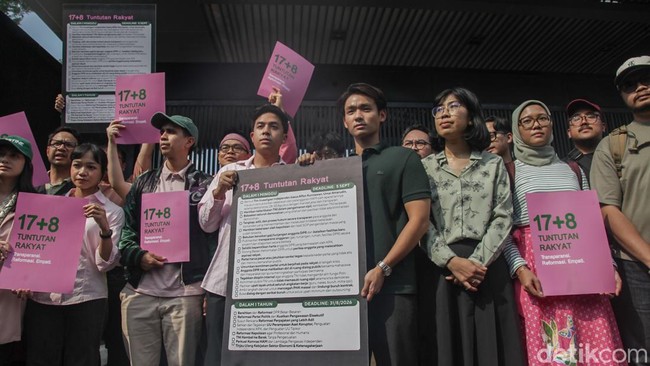 Para aktivis hingga influencer menyerahkan tuntutan rakyat '17+8' atau 17 tuntutan jangka pendek dan 8 tuntutan jangka panjang ke DPR RI pada Kamis kemarin. Diketahui 17 tuntutan itu tenggat waktunya jatuh hari ini.