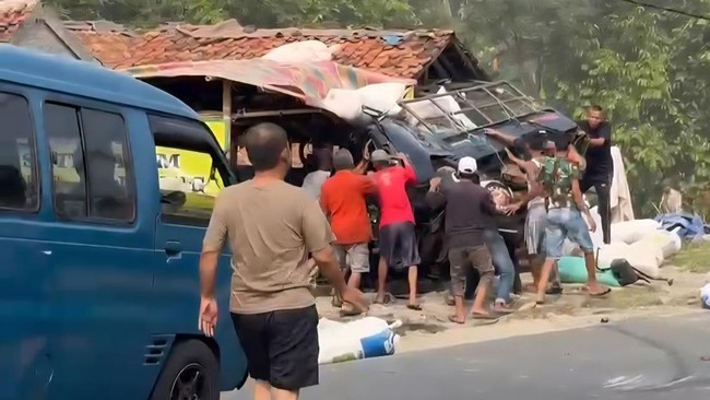 "Setibanya di TKP jalan menurun dan menikung, diduga kendaraan tersebut gagal melakukan pengereman, diduga mengalami gagal fungsi rem. Kemudian menabrak kendaraan pikap nopol F-8935-GJ yang hendak keluar dari gang (persimpangan) sebelah kiri," kata Ferdhyan.