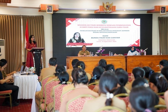 Bunda PUAD Kabupaten Gianyar Ida Ayu Surya Adnyani Mahayastra (Dayu Surya) menggelar acara penguatan Pendidikan Anak Usia Dini (PAUD) Holistik Integratif (HI) di Kori Maharani Villa. Acara tersebut diisi dengan advokasi program jaminan sosial ketenagakerjaan untuk mewujudkan PAUD bermutu dengan peningkatan kompetensi dan kesejahteraan guru PAUD.