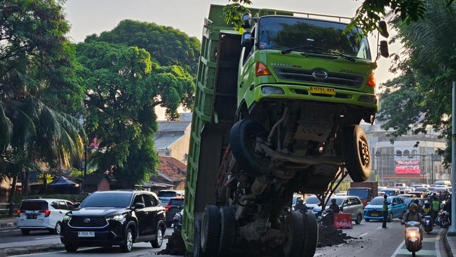 "Info sopir, dump truk kelebihan muatan. Pada pukul 03.00 WIB truk nanjak arah Tomang. Pada saat nanjak, truk tidak kuat hingga keangkat," kata Ari Setyo kepada wartawan, Rabu (10/9/2025).