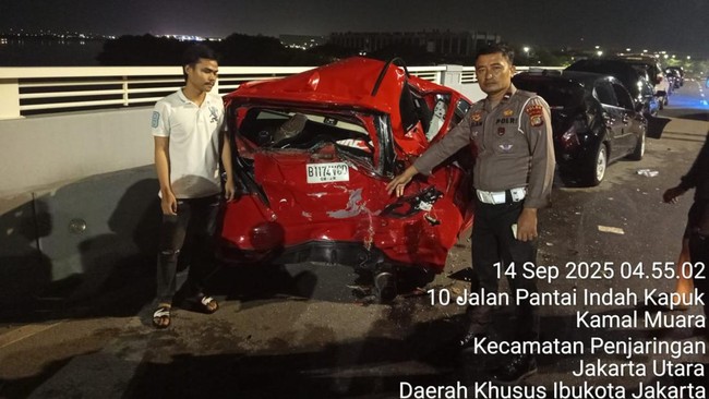 Kecelakaan melibatkan enam kendaraan terjadi di atas jembatan di kawasan Pantai Indah Kapuk (PIK), Jakarta Utara (Jakut). Satu unit mobil Toyota Avanza menabrak lima mobil yang lagi parkir di atas jembatan.