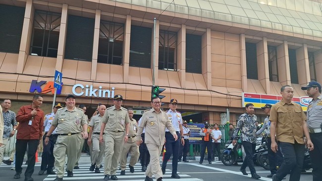Pantauan detikcom di Stasiun Cikini, Jakarta Pusat, Senin (15/9/2025), Pramono tiba sekitar pukul 15.47 WIB. Dia kemudian menjajal pelican crossing menuju Stasiun Cikini.