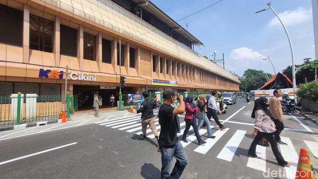 Warga yang hendak naik KRL dari Stasiun Cikini, Jakarta, kini tak perlu lagi memanjat pagar pembatas sebab sudah ada pelican cross. Selain pelican cross, Pemprov DKI Jakarta berencana membuat shelter khusus ojol shingga tidak ada penumpukan yang menyebabkan kemacetan.
