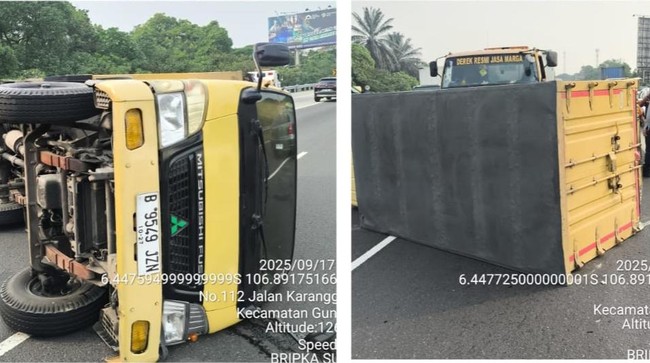"Informasi ada penanganan kecelakaan tepatnya di Gunung Putri Km 22+800 melibatkan kendaraan engkel boks terbalik miring di lajur 1," kata petugas call center Jasa Marga, Rizky, saat dihubungi pukul 07.44 WIB.