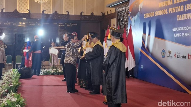 "Dan yang lebih saya kaget ada dua wisudawan tadi yang paling tua, Ibu tadi umurnya 87 tahun, dan yang Bapak tadi 80 tahun," kata Pramono dalam sambutannya di TMII, Jakarta Timur, Kamis (18/9/2025).