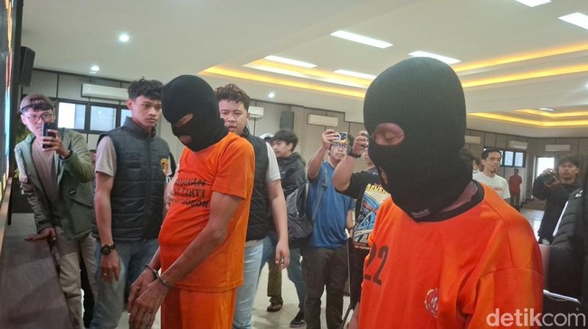 Pantauan detikcom, pelaku WS dan MR dihadirkan saat rilis di aula Polres Bogor, Minggu (21/9/2025). Dua sekawan ini dihadirkan dengan wajah ditutup sebo dan tangan diborgol.