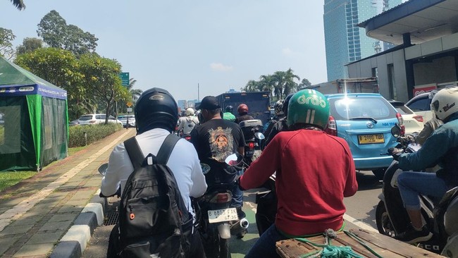 Pantauan detikcom di Jalan Gatot Subroto, Rabu (24/9/2025), pukul 10.30 WIB, tampak kemacetan terjadi mulai depan Gedung Direktorat Jenderal Pajak Kementerian Keuangan. Sejumlah kendaraan roda dua tampak menerobos jalur khusus bus TransJakarta.