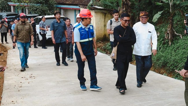 Andra Soni bersama dengan Bupati Lebak Mochamad Hasbi Asyidiki Jayabaya mengecek lokasi pembangunan jalan itu pada Minggu (28/9). Menurut data Pemerintah Provinsi Banten, jalan desa adat tersebut telah rusak selama 20 tahun.