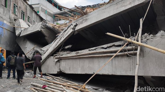 Pantauan detikJatim, hingga saat ini sudah ada 15 ambulans yang telah tiba di lokasi. Terdengar suara orang meminta tolong dari dalam bangunan yang ambruk.