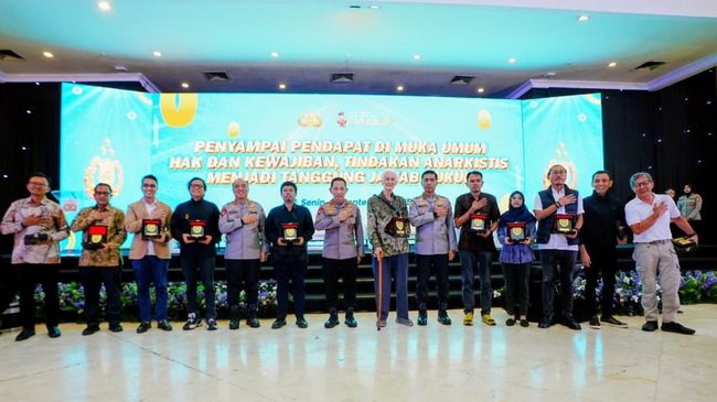 Polri menggelar dialog publik bertema 'Penyampaian Pendapat di Muka Umum Hak dan Kewajiban, Tindakan Anarkistis Menjadi Tanggung Jawab Hukum' di PTIK, Jakarta Selatan. Dialog itu jadi tempat koalisi masyarakat sipil menyampaikan masukan kepada Kapolri Jenderal Listyo Sigit Prabowo, khususnya terkait demonstrasi.