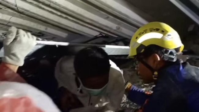 Nanang menyebut petugas juga masih dapat menjangkau korban. Namun, posisinya terimpit beton.