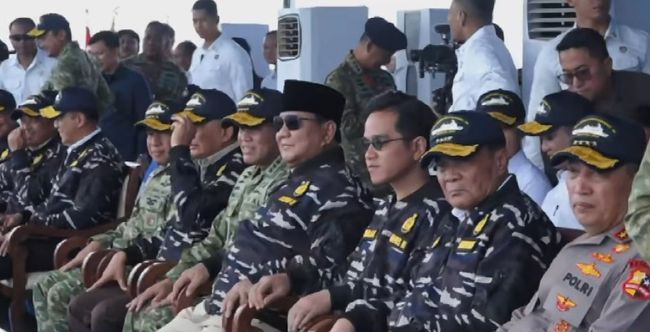 Acara ini digelar dalam kegiatan 'Presidential Inspection' menjelang HUT ke-80 TNI, Kamis (2/10/2025). Prabowo didampingi Wakil Presiden Gibran Rakabuming Raka, Menko Infrastruktur dan Kewilayahan Agus Harimurti Yudhoyono, Menko Polkam Djamari Chaniago, Menteri Kelautan dan Perikanan Sakti Waktu Trenggono, Menkomdogi Meutya Hafid, Mensesneg Prasetyo Hadi, Kepala BIN Herindra, Kapala Badan Komunikasi Pemerintah Angga Raka Prabowo, serta Seskab Teddy Indra Wijaya.