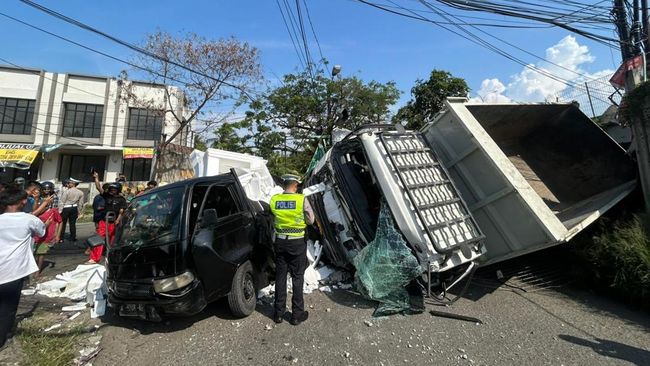 "Kendaraan berjalan out of control menabrak pembatas tol dan terjatuh keluar ke jalur arteri. (Truk) menabrak kendaraan Suzuki Carry pick up yang dikemudikan M membawa penumpang S, sepeda motor Yamaha N-Max yang dikemudikan DR berpenumpang VD, serta juru parkir an. S M yang sebelum kejadian berada di Jalan Kaligandu menuju Trondol," ujarnya.