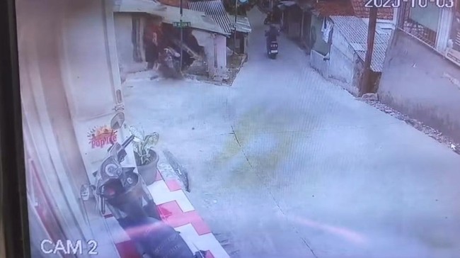 Video ibu-ibu berboncengan sepeda motor menabrak sebuah bangunan di Desa Cijujung, Kecamatan Sukaraja, Bogor, Jawa Barat, viral di media sosial. Keduanya menabrak bangunan yang ada di turunan tersebut hingga hancur.