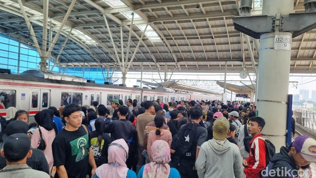 Stasiun Manggarai sempat dipadati penumpang imbas banyaknya warga yang hendak ke Monas, Jakarta Pusat, hari ini untuk meramaikan HUT ke-80 TNI. Kepadatan mulai mencair siang ini.