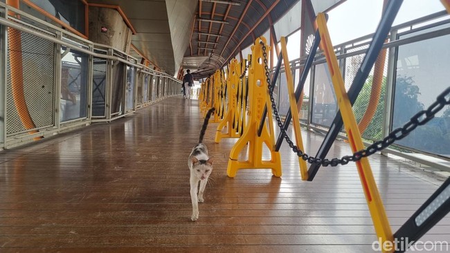 Selain membersihkan lantai, petugas juga menurunkan sejumlah kucing yang masih berada di area jembatan. Dalam rekaman itu, seorang petugas terlihat perlahan mengangkat kucing putih bercorak hitam yang sedang bersantai, kemudian membawanya turun dari skywalk.